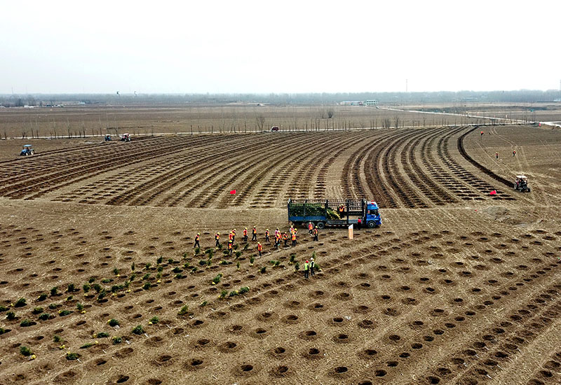 這是河北雄安新區(qū)“千年秀林”工程施工現(xiàn)場(chǎng)(3月21日無(wú)人機(jī)拍攝)。新華社記者 楊世堯 攝