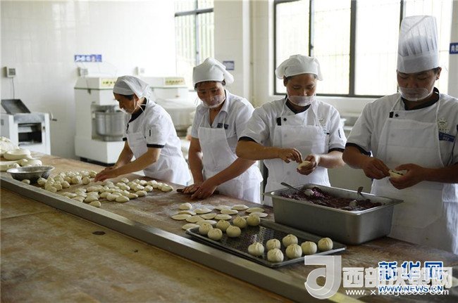 4月25日,廚師們在云南大學呈貢校區(qū)食堂制作玫瑰包。