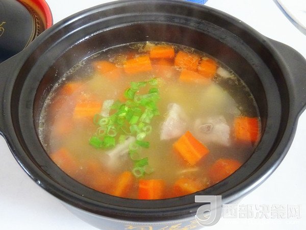 2.土豆胡蘿卜切塊,蔥葉切碎