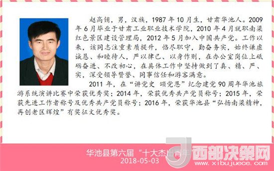 南梁革命紀(jì)念館趙高銪同志榮獲華池第六屆"十大杰出青年"榮譽稱號