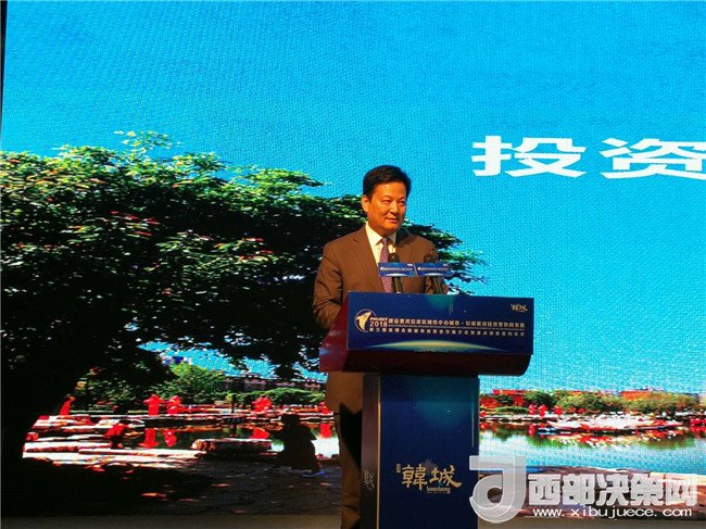 韓城市委副書記、代市長杜鵬主持推介會,韓城市委書記褚錦峰介紹了韓城經濟社會發(fā)展情況,他指出,韓城在投資興業(yè)上,具有六大明顯優(yōu)勢,即厚重的文化優(yōu)勢、便捷的區(qū)位優(yōu)勢、活躍的經濟優(yōu)勢、豐富的資源優(yōu)勢、潛在的市場優(yōu)勢、中省的政策優(yōu)勢,他熱忱歡迎各位企業(yè)家到韓城經開區(qū)、高新區(qū)、芝川新區(qū)、黃河新區(qū)、龍亭新區(qū)、象山科教新區(qū)、堡安新區(qū)等“八大新區(qū)”實地考察,到五個特色小鎮(zhèn)尋找賺錢機會,投資千億新能源汽車、千億精細化工、千億環(huán)保陶瓷、千億高端裝備、千億健康產業(yè)等“五大千億產業(yè)集群”,必將獲得豐厚回報。他鄭重承諾,堅持優(yōu)質服務理念,甘當企業(yè)發(fā)展的“服務員”,項目建設的“店小二”,用干部的辛苦指數換取企業(yè)的利潤指數,把投資者的“表情包”作為檢驗政府工作的“晴雨表”。