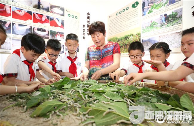 5月15日,德清縣新市鎮(zhèn)完全小學(xué)的10多名學(xué)生來到勇興村蠶桑文化館,了解養(yǎng)蠶制絲的古老手藝,感受中國絲之源和蠶桑文化的獨(dú)特魅力。(浙江在線拍友 王正 攝)