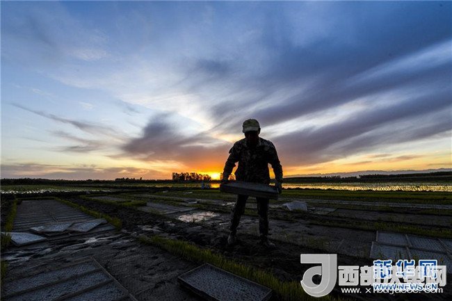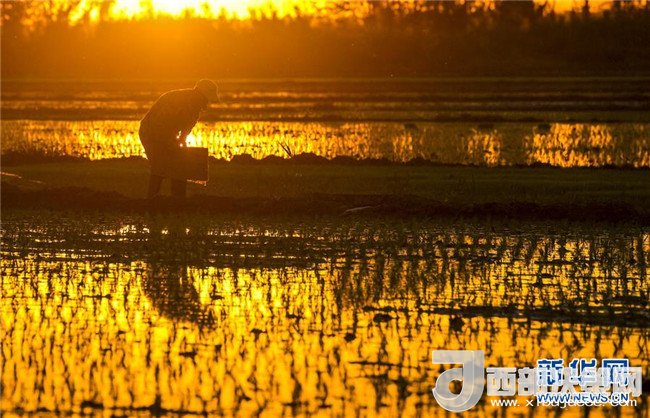 夕陽西下,村民在新疆察布查爾錫伯自治縣種羊場托海依村的一處農(nóng)田里勞動(5月21日攝)。近日,隨著氣溫漸高,地處新疆伊犁河谷的察布查爾錫伯自治縣迎來插秧高峰期,田間地頭一派繁忙景象。塊塊稻田水滿如鏡,田間防護(hù)林枝繁葉茂,遠(yuǎn)處雪山依稀可見,如一幅在大地上鋪展開的生態(tài)畫卷。新華社記者胡虎虎攝