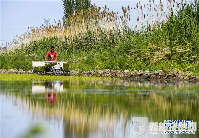 新疆察布查爾錫伯自治縣種羊場托海依村的村民在農(nóng)田里搬運秧苗(5月21日攝)。近日,隨著氣溫漸高,地處新疆伊犁河谷的察布查爾錫伯自治縣迎來插秧高峰期,田間地頭一派繁忙景象。塊塊稻田水滿如鏡,田間防護(hù)林枝繁葉茂,遠(yuǎn)處雪山依稀可見,如一幅在大地上鋪展開的生態(tài)畫卷。新華社記者胡虎虎攝