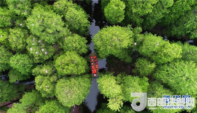 夏日時節(jié),位于江蘇省興化市李中鎮(zhèn)的水上森林公園滿目蒼翠,綠意撲面。水杉、池杉等樹木構成了一幅幅夏日畫卷,吸引不少游客前往游覽。
