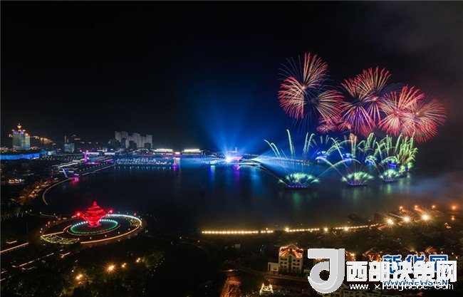 6月9日至10日,上海合作組織青島峰會在山東青島召開。這是6月9日晚在青島舉行的《有朋自遠方來》燈光焰火藝術(shù)表演。新華社記者 徐昱 攝
