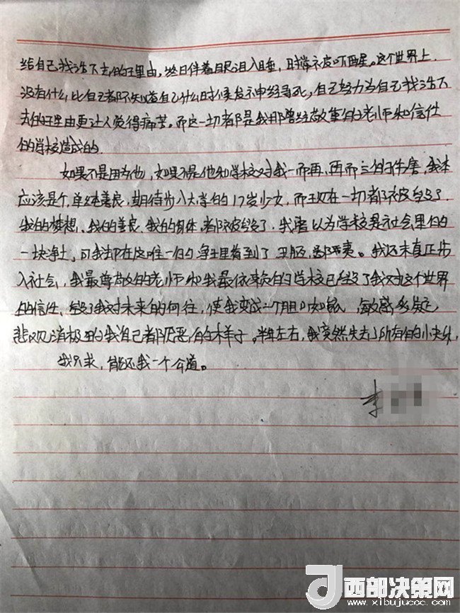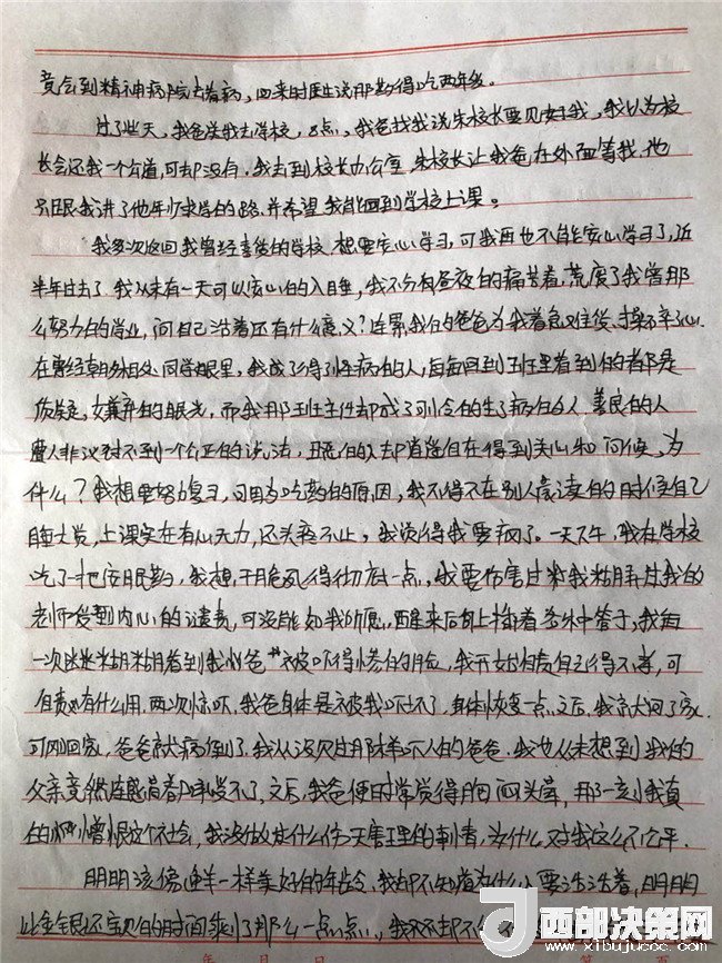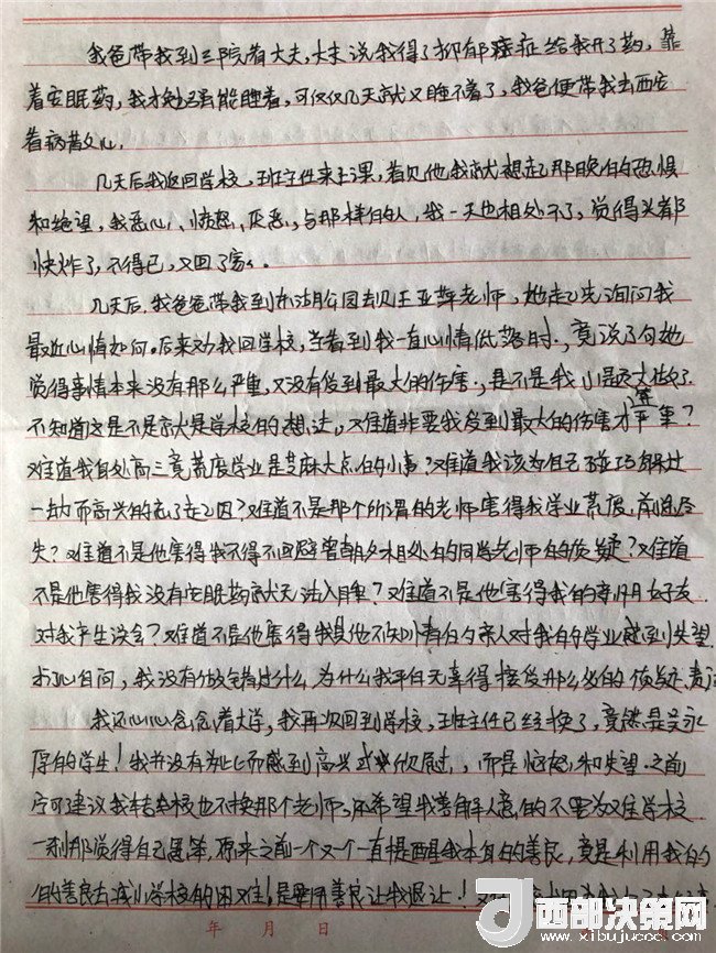 在與李某奕父親了解的過(guò)程中得知,雖然父母離異但并未影響她的學(xué)習(xí),不像網(wǎng)友猜測(cè),她是因?yàn)楦改鸽x異患抑郁癥的。李某奕在校學(xué)習(xí)期間(事發(fā)之前)非??炭啵恢眽?mèng)想報(bào)考新聞傳媒專業(yè),且經(jīng)常參加學(xué)校的各種活動(dòng)并擔(dān)任主持人。但一切就從班主任吳某厚的獸行之后開(kāi)始改變了。從患病開(kāi)始她一直堅(jiān)持要上學(xué),但由于吃藥的緣故她不能正常的上課,加之長(zhǎng)期的治療也落下不少功課,最后由于身體和心理原因,她感覺(jué)力不從心。中途三次試圖吃大量鎮(zhèn)定類、抑郁類藥物想要結(jié)束自己的生命,都被及時(shí)搶救了下來(lái)。在她的控訴書(shū)中有一段:“明明該像鮮花一樣美好的年齡,我卻不知道為什么人要活著?明明比金銀還寶貝的時(shí)間剩了那么一點(diǎn)點(diǎn),我卻不得不中斷學(xué)習(xí),而是給自己找活下去的理由。終日伴著眼淚入睡,時(shí)常被嚇醒,這個(gè)世界上沒(méi)有什么比自己都不知道自己什么時(shí)候發(fā)神經(jīng)尋死,自己努力為自己找活下去的理由更讓人覺(jué)得痛苦。而這一切都是我那曾經(jīng)的老師和信任的學(xué)校造成的。”從實(shí)際了解和李某奕控訴書(shū)中的描寫,她整日活在焦慮、恐懼、痛苦之中,這樣的生活離她的大學(xué)夢(mèng)想越來(lái)越遠(yuǎn),直至破滅。