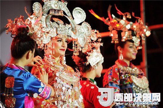 7月2日晚,在貴州省黔東南苗族侗族自治州丹寨縣,一場以苗族婚禮、苗族服飾為主的服飾秀在萬達小鎮(zhèn)舉行。中國以及來自喀麥隆、巴西、墨西哥、荷蘭等國的模特,集中展示民族服飾元素設(shè)計作品。新華社發(fā)(楊文斌 攝)