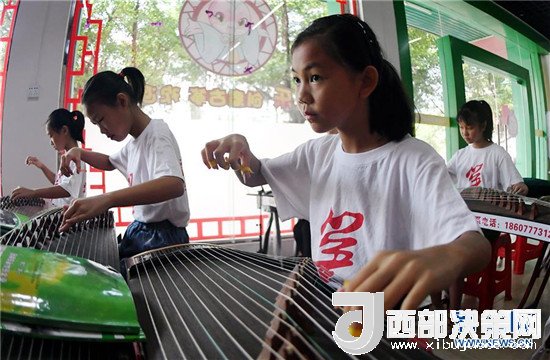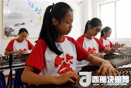 7月12日,孩子們在廣西欽州市一家古箏培訓中心練習。