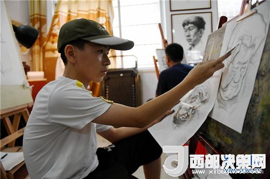 7月12日,在廣西欽州市一家書畫培訓中心,一名男孩在練習素描。