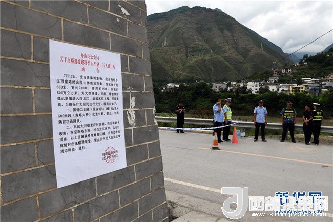 7月15日,在舟曲縣南峪鄉(xiāng),通往險(xiǎn)情點(diǎn)的道路被臨時(shí)交通管制。