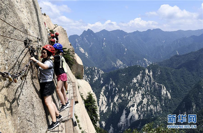 7月18日,游人通過(guò)華山長(zhǎng)空棧道。