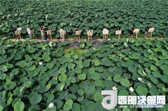 7月24日,一群學(xué)生在隆堯縣東良鎮(zhèn)澤畔村荷塘邊寫(xiě)生。