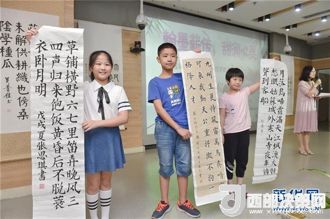 7月24日,在福建省少年兒童圖書館,參加省級(jí)書法名師公益夏令營(yíng)的孩子們?cè)诜窒頃▌?chuàng)作體會(huì)。