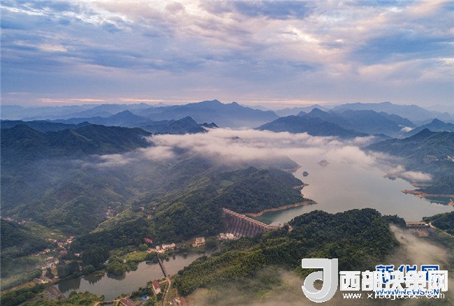 7月26日,霍山縣磨子潭鎮(zhèn)。磨子潭水庫(kù)上空白云朵朵,宛若仙境。
