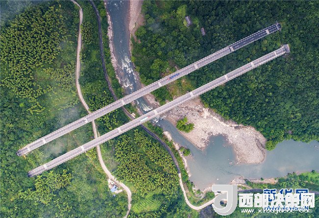 7月26日,霍山縣磨子潭鎮(zhèn)。二輛汽車行駛在濟(jì)廣高速公路磨子潭特大橋上。