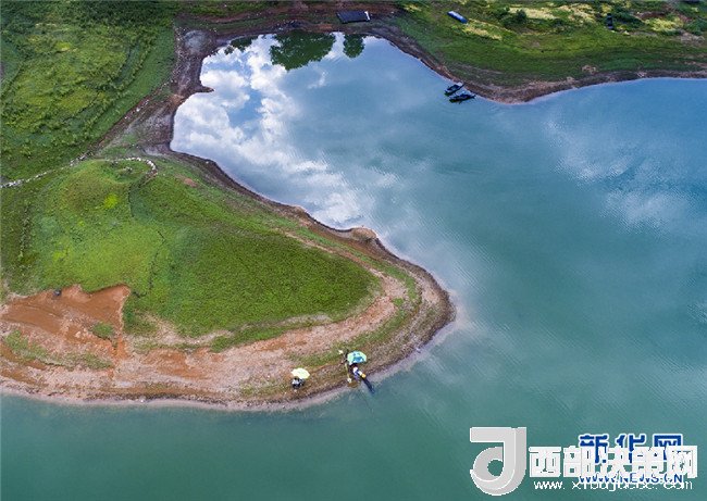 7月26日,霍山縣單龍寺鎮(zhèn)。二名釣魚愛好者在庫(kù)區(qū)水邊垂釣。