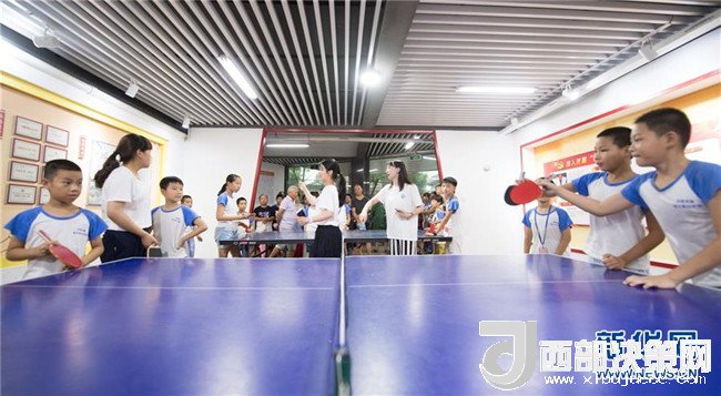 7月26日,在柯橋區(qū)安昌街道社區(qū)文化禮堂,“小候鳥”在打乒乓球。