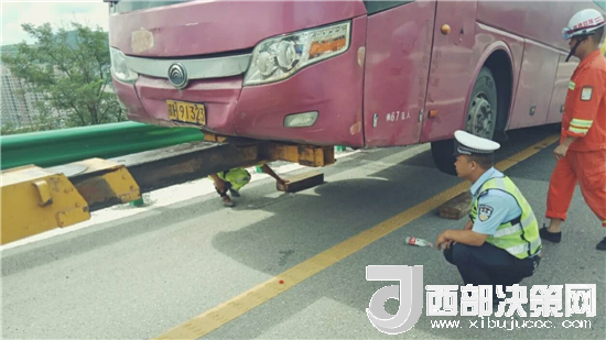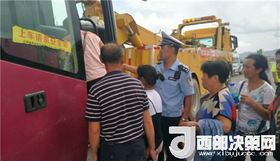 西部決策網(wǎng)-西部大開發(fā)訊(記者帥華鋒 通訊員 馬存福 蘇娟)7月31日上午,甘肅西和縣公安局交警大隊高速中隊執(zhí)勤民警巡邏至十天高速西和段上行線天水方向(西和隧道附近),發(fā)現(xiàn)一輛大客車??吭诼愤叄?dāng)時高速行駛的車輛川流不息,車輛沒有停放在安全地帶,存在著極大的安全隱患。民警上前立即查看情況,發(fā)現(xiàn)車輛故障,67名乘客被困于高速,乘客大多數(shù)為婦女與兒童,由于天氣炎熱,長時間困于車輛中,情緒焦急不安,存在諸多不安全因素,見此情況,民警立即在故障車輛兩百米外設(shè)置安全提示牌,擺放錐桶,現(xiàn)場指揮過往車輛,提醒車輛減速慢行,做好防護的同時,利用巡邏警車將車上乘客有序轉(zhuǎn)移到一公里外的停車區(qū),積極聯(lián)系高速公路救援中心將故障車輛進行拖移,盡快撤離高速,恢復(fù)交通秩序。