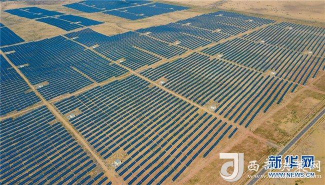 這是位于庫(kù)布其沙漠中的億利集團(tuán)生態(tài)能源光伏電站(7月11日無人機(jī)拍攝)。 新華社記者 彭源 攝