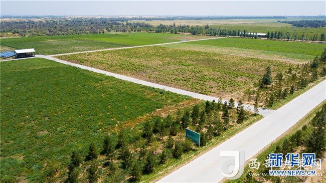 這是位于庫(kù)布其沙漠中的億利集團(tuán)阿木古龍甘草健康產(chǎn)業(yè)園(7月11日無人機(jī)拍攝)。 新華社記者 彭源 攝