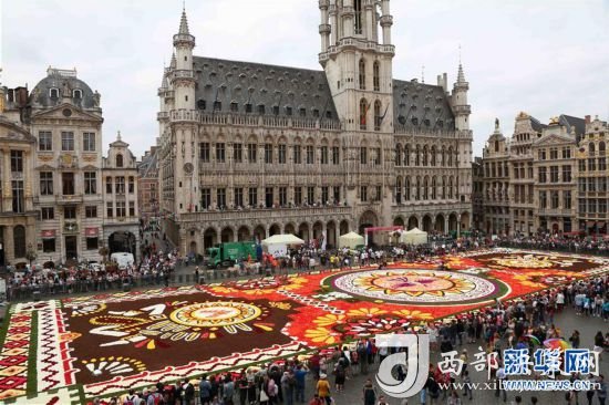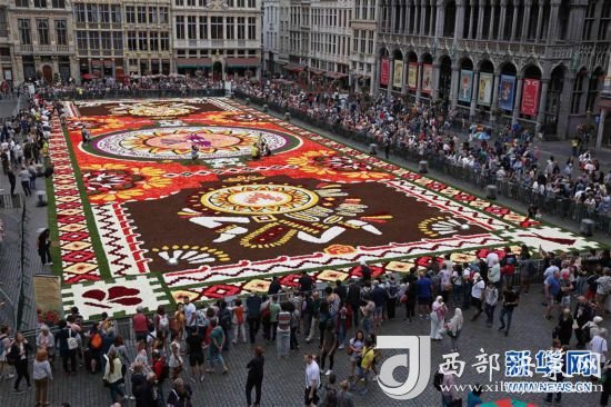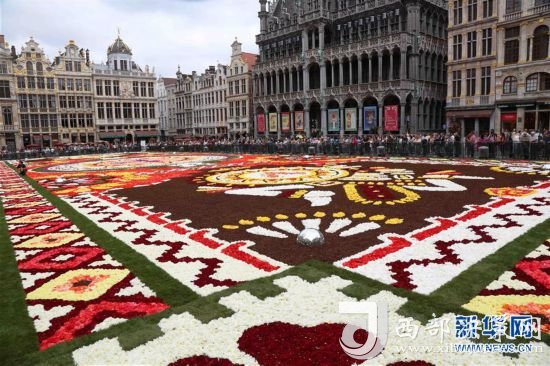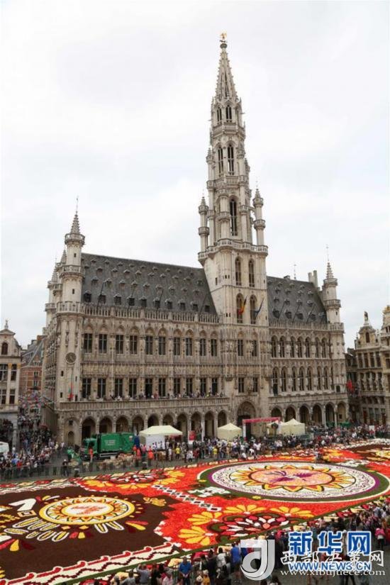 8月16日,由50多萬朵秋海棠鋪就的鮮花地毯亮相比利時(shí)布魯塞爾大廣場。 新華社記者王曉郡攝