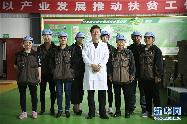 潘文賢(前排中)在寧夏固原市隆德縣隆德人造花工藝有限公司與企業(yè)員工合影(8月29日攝)。來自福建南安市的潘文賢2011年在隆德縣創(chuàng)辦隆德人造花工藝有限公司,成為隆德縣第一家集研發(fā)、生產(chǎn)和銷售于一體的勞動密集型出口創(chuàng)匯企業(yè),產(chǎn)品遠銷歐美及東南亞等國家和地區(qū)。截至2017年底,已成功打造隆德縣前莊村、紅崖社區(qū)等5個扶貧車間,幫助150人穩(wěn)定就業(yè)、218戶外加工戶靈活增收,帶動300多個建檔立卡戶增收脫貧。新華社記者王鵬攝