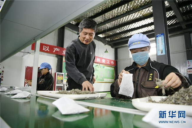 林玉清(中)在寧夏固原市西吉縣寧夏澤艾堂生物科技有限公司向工人講解艾草包裝注意事項(8月30日攝)。來自福建莆田的林玉清2017年3月在西吉縣成立寧夏澤艾堂生物科技有限公司,依托西吉縣優(yōu)質(zhì)的艾草種植條件,采用“公司+合作社+農(nóng)戶”的訂單農(nóng)業(yè)合作模式,與吉強、新營等鄉(xiāng)鎮(zhèn)種植專業(yè)合作社合作建成艾草種植基地11個、推廣種植艾草6000畝,為當?shù)厝罕娒撠氈赂讳伨托侣纷印?新華社記者王鵬攝