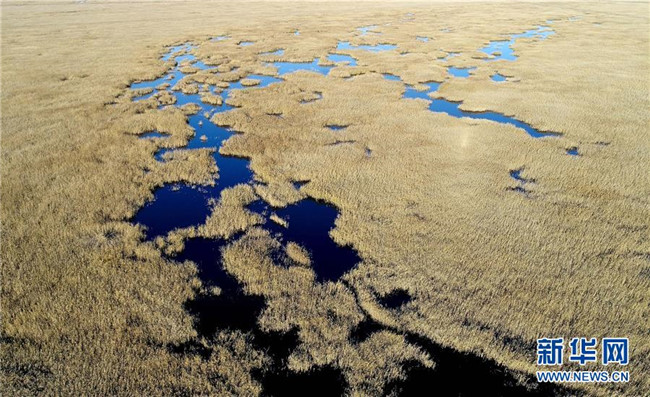 這是天津南部的北大港濕地(2017年11月15日無人機(jī)拍攝)。
