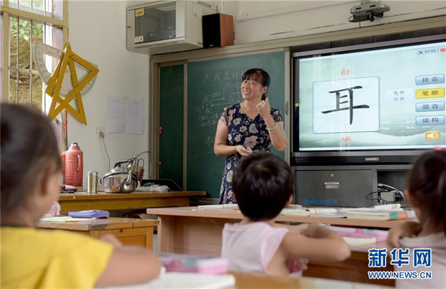 在安徽省黃山市黃山區(qū)烏石鎮(zhèn)清溪中心小學(xué)茶兒垅村教學(xué)點(diǎn)內(nèi),蔣秀蘭老師在給孩子們上語文課(9月7日攝)。今年53歲蔣秀蘭老師從1983年參加工作開始,一直獨(dú)自堅(jiān)守在“一人一校”的單班教學(xué)點(diǎn),最多的時(shí)候獨(dú)自一人帶過26名學(xué)生,目前她負(fù)責(zé)兩個(gè)年級5個(gè)孩子7門課的教學(xué)。 新華社記者 王正忠 攝