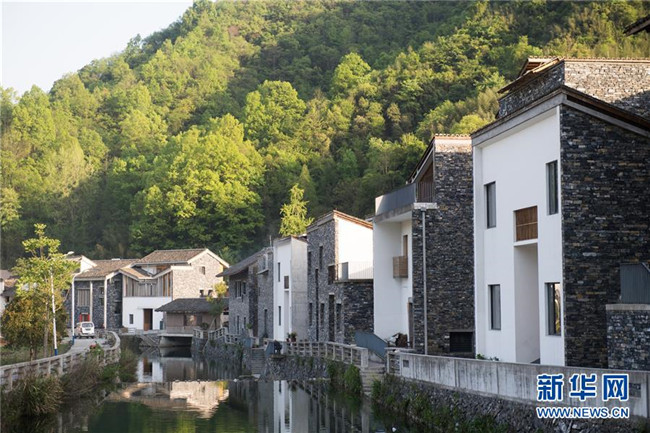 浙江省杭州市富陽區(qū)洞橋鎮(zhèn)文村地處富陽區(qū)遠(yuǎn)郊,村中保有40幢古民居,建筑師王澍以當(dāng)?shù)氐慕ㄖ牧虾蜕顐鹘y(tǒng)為村里設(shè)計(jì)了14幢新民居,呈現(xiàn)出美麗宜居鄉(xiāng)村新面貌(4月10日攝)。 新華社記者 翁忻旸 攝