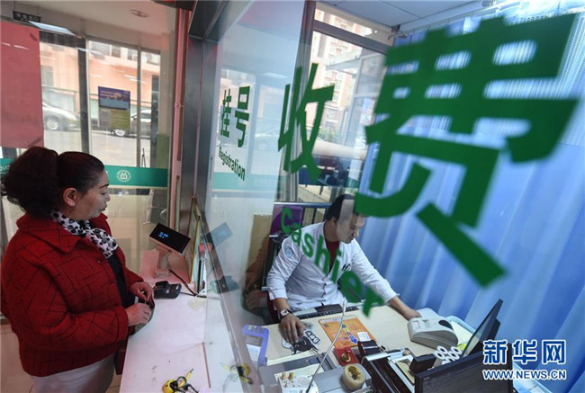 2017年4月8日,北京“醫(yī)藥分開”綜合改革正式在3600余家醫(yī)療機(jī)構(gòu)實(shí)施。這是市民在北京東花市社區(qū)衛(wèi)生服務(wù)中心掛號交錢。 新華社記者 羅曉光 攝