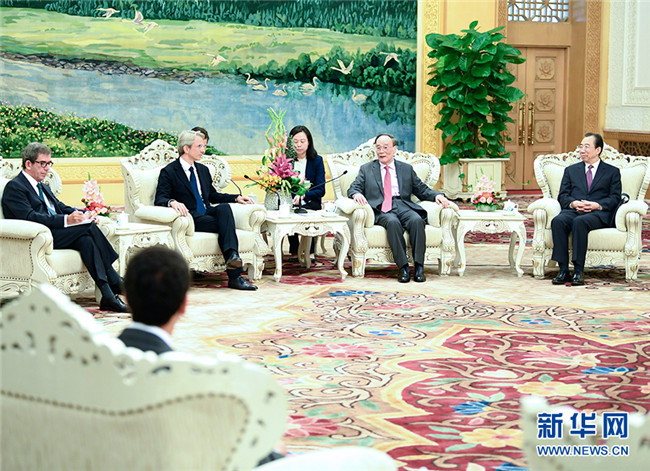 國(guó)家副主席王岐山15日在人民大會(huì)堂會(huì)見出席第六屆中法青年領(lǐng)導(dǎo)者論壇的雙方代表。