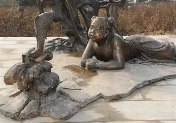 姜詩(shī),東漢四川廣漢人,娶龐氏為妻。夫妻孝順,其家距長(zhǎng)江六七里之遙,龐氏常到江邊取婆婆喜喝的長(zhǎng)江水。婆婆愛(ài)吃魚(yú),夫妻就常做魚(yú)給她吃,婆婆不愿意獨(dú)自吃,他們又請(qǐng)來(lái)鄰居老婆婆一起吃。一次因風(fēng)大,龐氏取水晚歸,姜詩(shī)懷疑她怠慢母親,將她逐出家門(mén)。龐氏寄居在鄰居家中,晝夜辛勤紡紗織布,將積蓄所得托鄰居送回家中孝敬婆婆。其后,婆婆知道了龐氏被逐之事,令姜詩(shī)將其請(qǐng)回。龐氏回家這天,院中忽然噴涌出泉水,口味與長(zhǎng)江水相同,每天還有兩條鯉魚(yú)躍出。從此,龐氏便用這些供奉婆婆,不必遠(yuǎn)走江邊了。