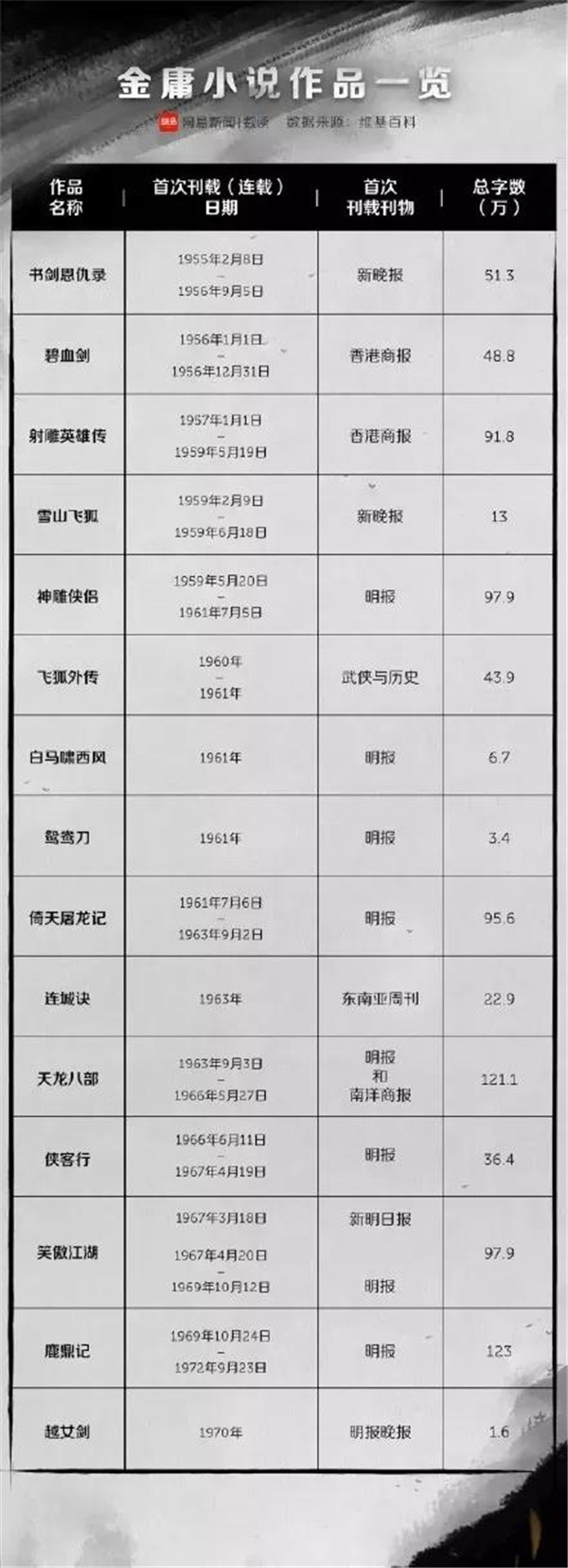 作為一直“被去世”的名人,金庸老先生自己都會調(diào)侃說到“我都死了20多回了”。而這位武俠泰斗,這次是真的離開了。就像他自己曾說過的那樣“大鬧一場,悄然離去”。