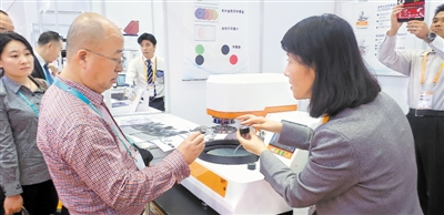 寧夏金海逸環(huán)保設(shè)備工程有限公司總經(jīng)理呂忱對智能及高端智能裝備制造展區(qū)興趣濃厚。