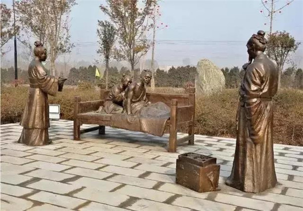 漢文帝劉恒,漢高祖第三子,為薄太后所生。高后八年(前180)即帝位。他以仁孝之名,聞于天下,侍奉母親從不懈怠。母親臥病三年,他常常目不交睫,衣不解帶;母親所服的湯藥,他親口嘗過后才放心讓母親服用。他在位24年,重德治,興禮儀,注意發(fā)展農業(yè),使西漢社會穩(wěn)定,人丁興旺,經濟得到恢復和發(fā)展,他與漢景帝的統(tǒng)治時期被譽為“文景之治”。