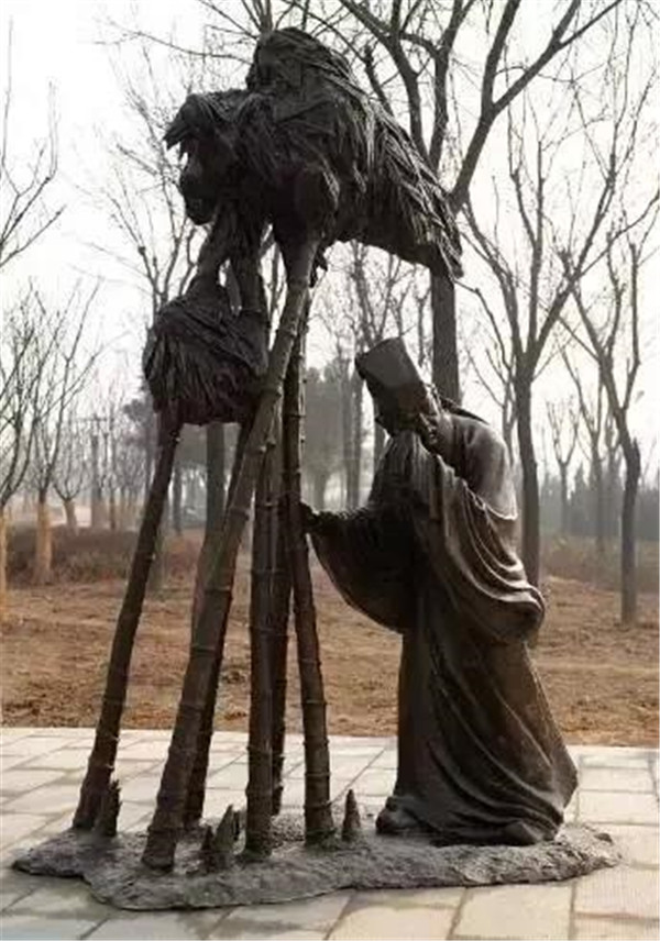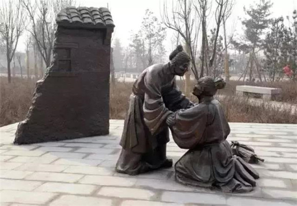 丁蘭,相傳為東漢時期河內人,幼年時父母雙亡,他經常思念父母的養(yǎng)育之恩,于是用木頭刻成雙親的雕像,事之如生,凡事均和木像商議,每日三餐敬過雙親后自己方才食用,出門前一定稟告,回家后一定面見,從不懈怠。久之,其妻對木像便不太恭敬了,竟好奇地用針刺木像的手指,而木像的手指居然有血流出。丁蘭回家見木像眼中垂淚,問知實情,遂將妻子休棄。