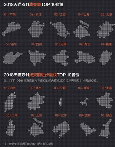 不過,今年最亮眼的地域榜單來自“進(jìn)步”飛快的10個大省——它們以最快的速度實現(xiàn)了對2017年全天成交額的超越。除了北京、重慶、上海和河南,山西、寧夏、河南、天津、遼寧、吉林、陜西都屬于名副其實的“剁手新生代”。