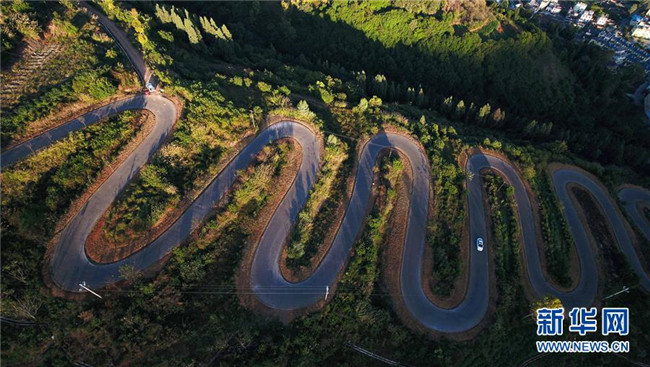云南宜良“68道拐”位于云南省昆明市宜良縣,是宜良縣城通往靖安哨村的盤山公路。公路依山梁而修建,蜿蜒曲折,6.3公里的路程共有68道彎?!⌒氯A社記者 藺以光 攝