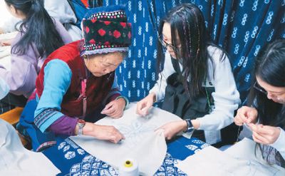 香港同學(xué)向白族阿媽學(xué)習(xí)扎染