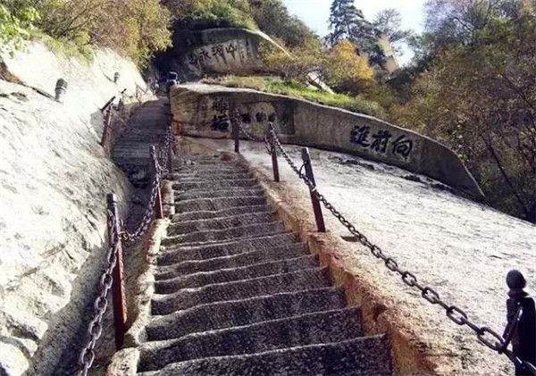 位于華山東峰,是通往下棋亭的必由之路。其路鑿于倒坎懸崖上,下視唯見寒索垂于凌空,不見路徑。