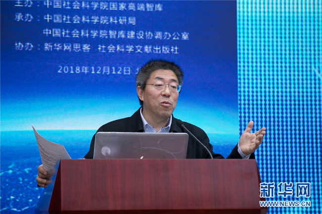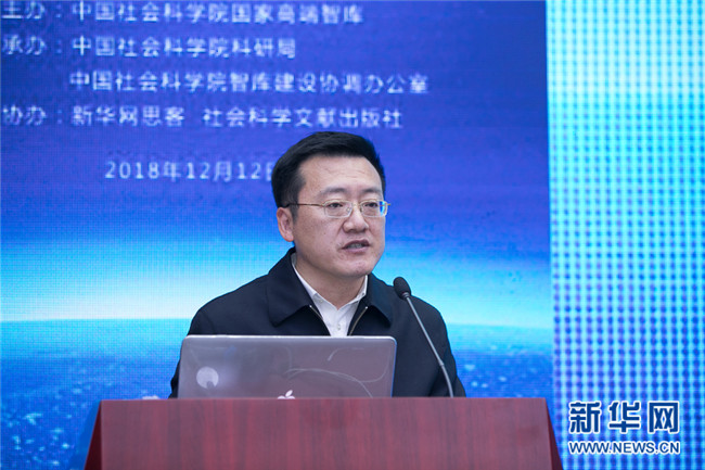 中國(guó)社會(huì)科學(xué)院科研局局長(zhǎng)、院智庫(kù)建設(shè)協(xié)調(diào)辦公室主任馬援致辭。肖斌 攝