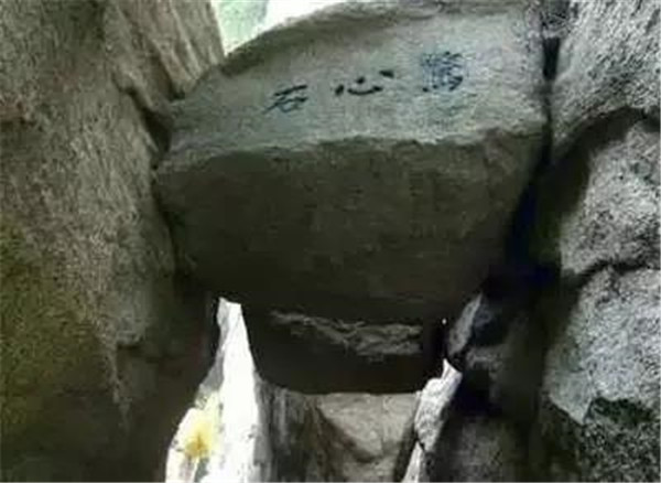 出千尺幢并不遠(yuǎn),便是百尺峽,這里是登山的第二道險(xiǎn)關(guān),兩壁高聳,中夾有一塊崩落下來(lái)的巨石,人從石下過(guò),驚心動(dòng)魄,抬頭望去,石上題有“驚心石”三個(gè)大字。