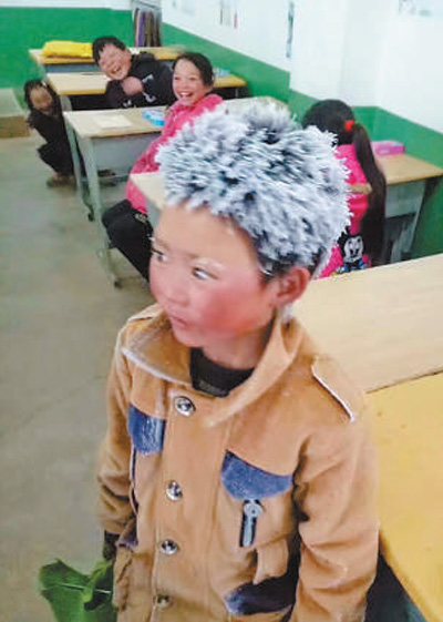去年初,小滿因為頭頂著冰霜上學而被稱為“冰花男孩”。 資料圖片 |