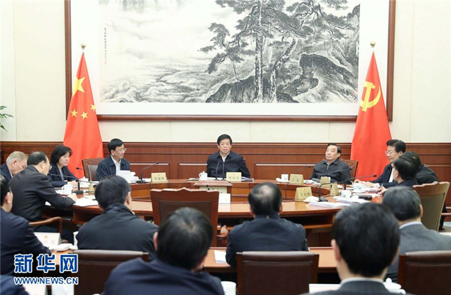 1月14日,中共全國(guó)人大常委會(huì)黨組在北京舉行會(huì)議,認(rèn)真學(xué)習(xí)領(lǐng)會(huì)習(xí)近平總書(shū)記在十九屆中央紀(jì)委三次全會(huì)上的重要講話和全會(huì)精神,結(jié)合人大工作實(shí)際,研究部署貫徹落實(shí)工作。中共中央政治局常委、全國(guó)人大常委會(huì)委員長(zhǎng)、黨組書(shū)記栗戰(zhàn)書(shū)主持會(huì)議并講話。 新華社記者 劉衛(wèi)兵 攝