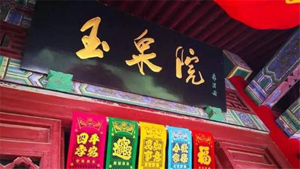 玉泉院的整體布局順應(yīng)了中國(guó)傳統(tǒng)的園林建筑布局風(fēng)格,“對(duì)稱美”的審美觀體現(xiàn)得十分鮮明,整體格局十分嚴(yán)道。正門居中,兩側(cè)回廊,西北東北兩角各一亭。西院面東有七真殿,東院面西就有華岳圣母殿。西有山蘇亭、希夷睡洞,東有運(yùn)氣亭、呂祖洞。正殿直對(duì)大門,用墻分割為一單體院落,拱門與前院相通、從視覺(jué)心理上給人以靜止、穩(wěn)重和居塵出塵之感,體現(xiàn)了道家中規(guī)中矩的“無(wú)為”思想和追求完善的審美情趣。