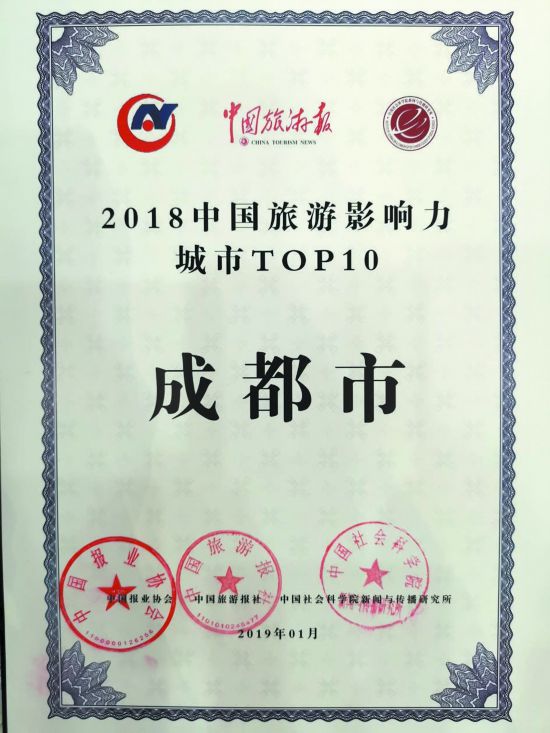 成都入選2018中國旅游影響力城市TOP10