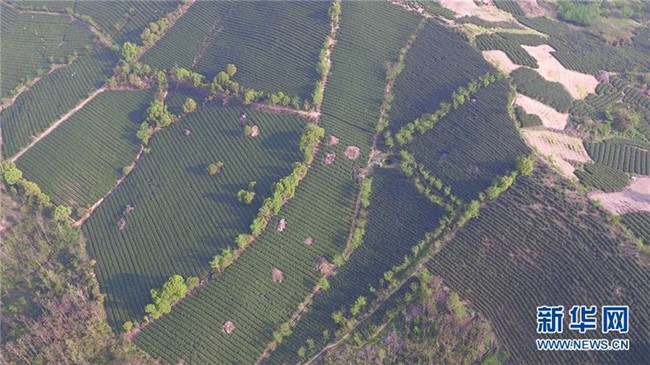 這是2018年4月2日拍攝的無錫宜興白塔村茶園(無人機(jī)拍攝)。 新華社記者 季春鵬 攝