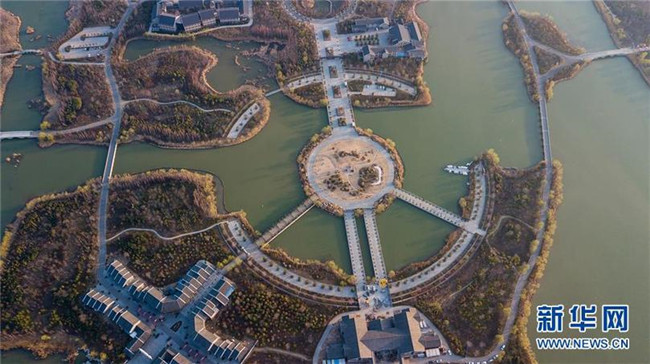 這是2018年3月13日拍攝的位于徐州賈汪區(qū)的潘安湖濕地公園一角(無人機(jī)拍攝)。新華社記者 季春鵬 攝